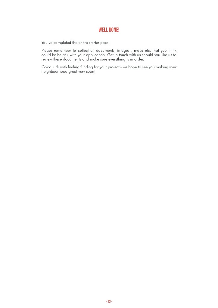 The starter pack summarises the typical first steps in putting a spatial intervention for a mixed team of practitioners. The tool allows for quick ideation and communication of the idea to fast track the co-design, funding and planning stages of tactical neighborhood projects.